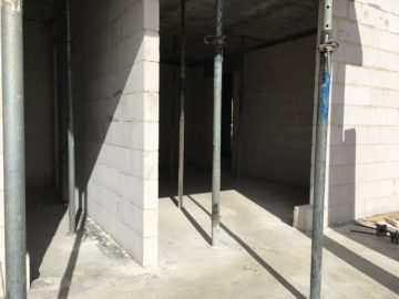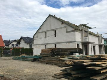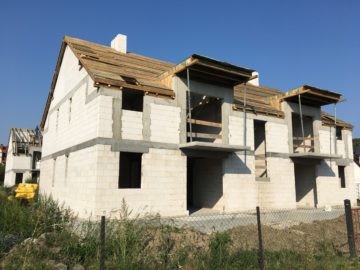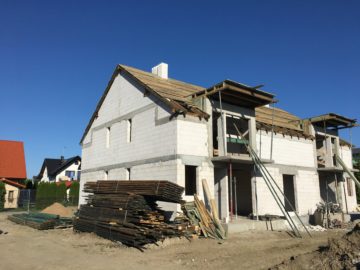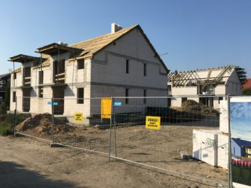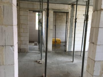 ZakoĹczono murowanie Ĺcian konstrukcyjnych i Ĺcian dziaĹowych w budynku nr 1. TrwajÄ prace nad Ĺcianami dziaĹowymi w budynku nr 2.